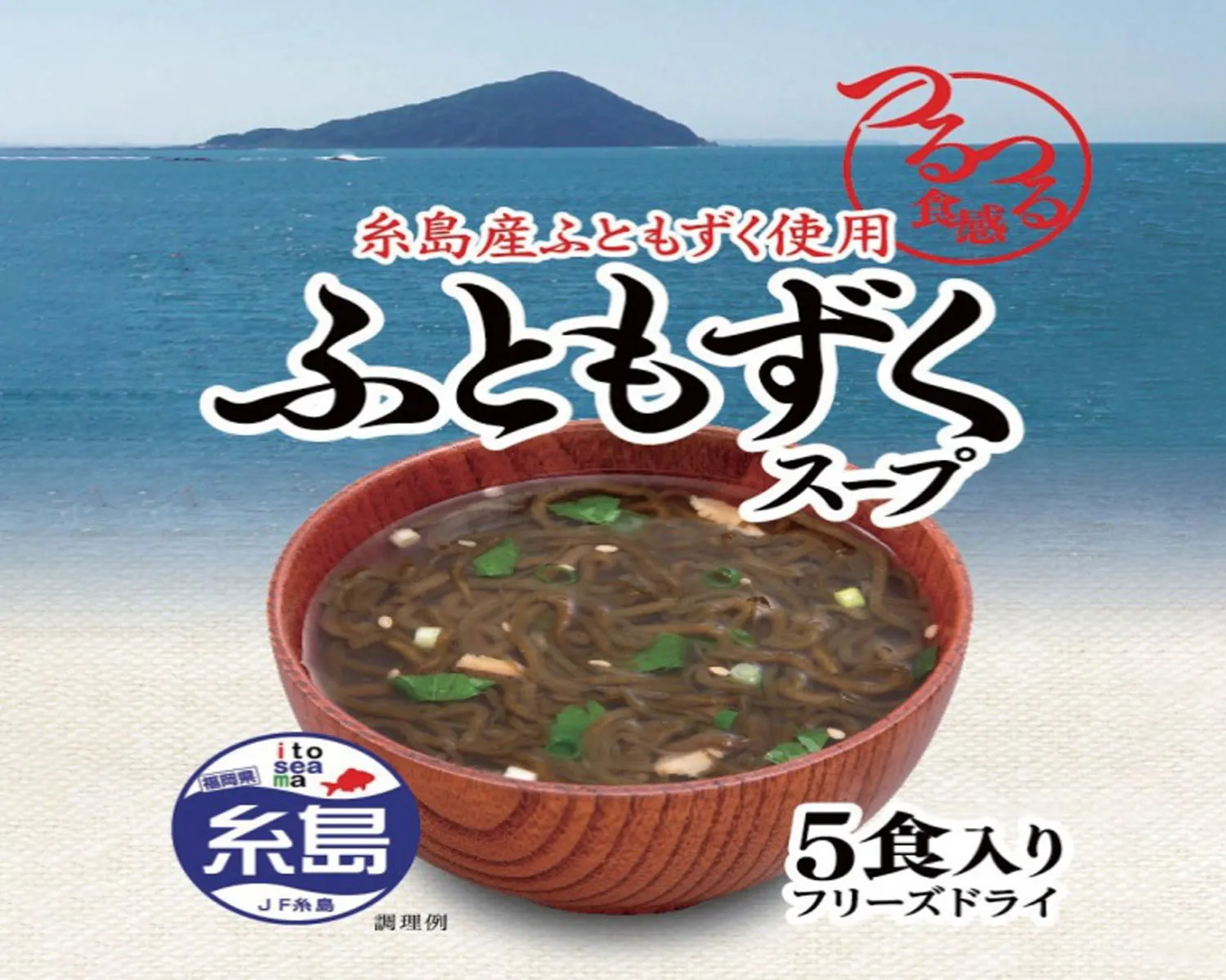 糸島産のふともずくを使ったフリーズドライスープです。もずくの食感とうま味を手軽に味わえます。