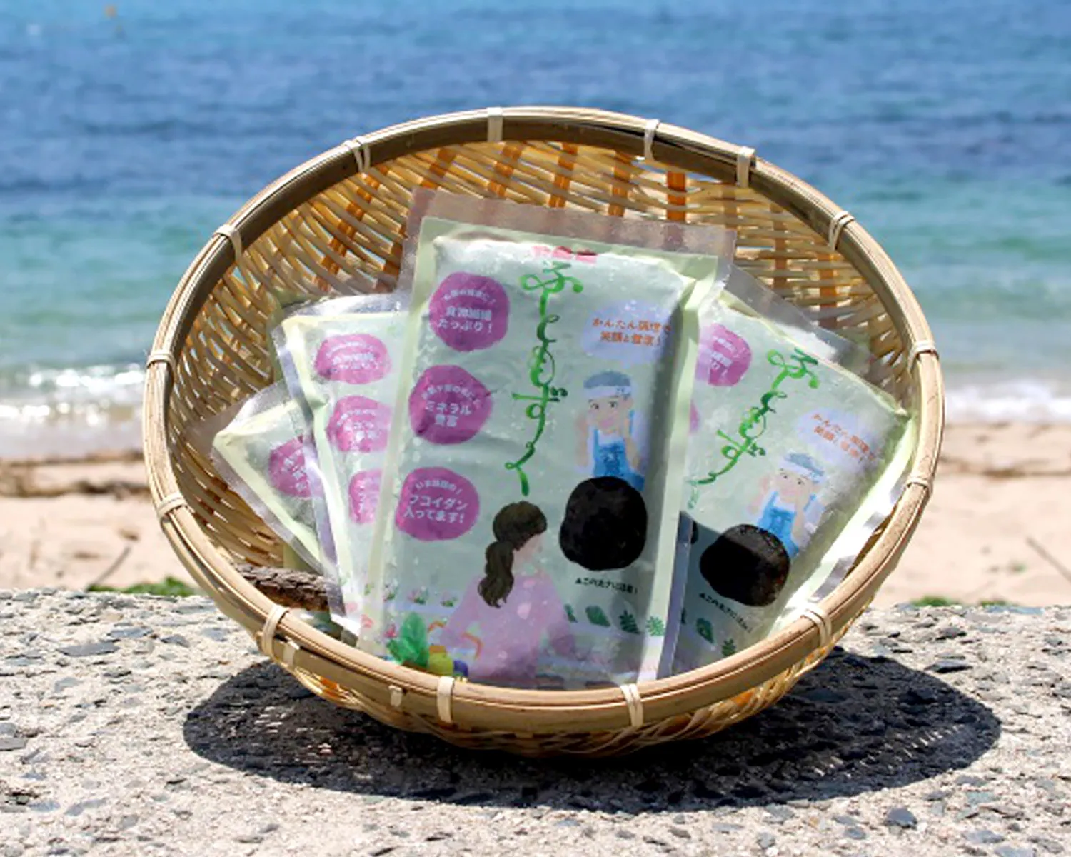 糸島沖で養殖されたもずくを使用した加工品です。つるりとした食感で、さまざまな料理に使えます。